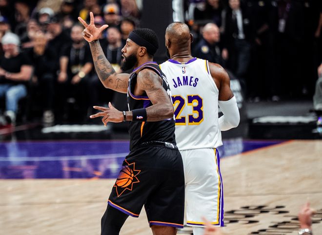 太阳没放弃,布鲁克斯下起三分雨,联合马威一路追到只差9分!最后5分钟,艾顿和文森特上分,东契奇终于命中三分,吉莱斯皮和布克继续缩小分差。还剩2分钟,布鲁克斯上篮+吉莱斯皮抢三分,湖人这边老詹失误+东契奇打铁。詹姆斯终于上篮命中,布鲁克斯倒地三分反超!湖人只剩12秒时间,而布鲁克斯也因为对詹姆斯有附加动作,吃到第二个T被驱逐!詹姆斯罚球不中,东契奇最后一攻不敢投,詹姆斯干拔三分造成犯规,老詹三罚中二反超,太阳又被吹犯规,最终湖人116-114惊险击败太阳!